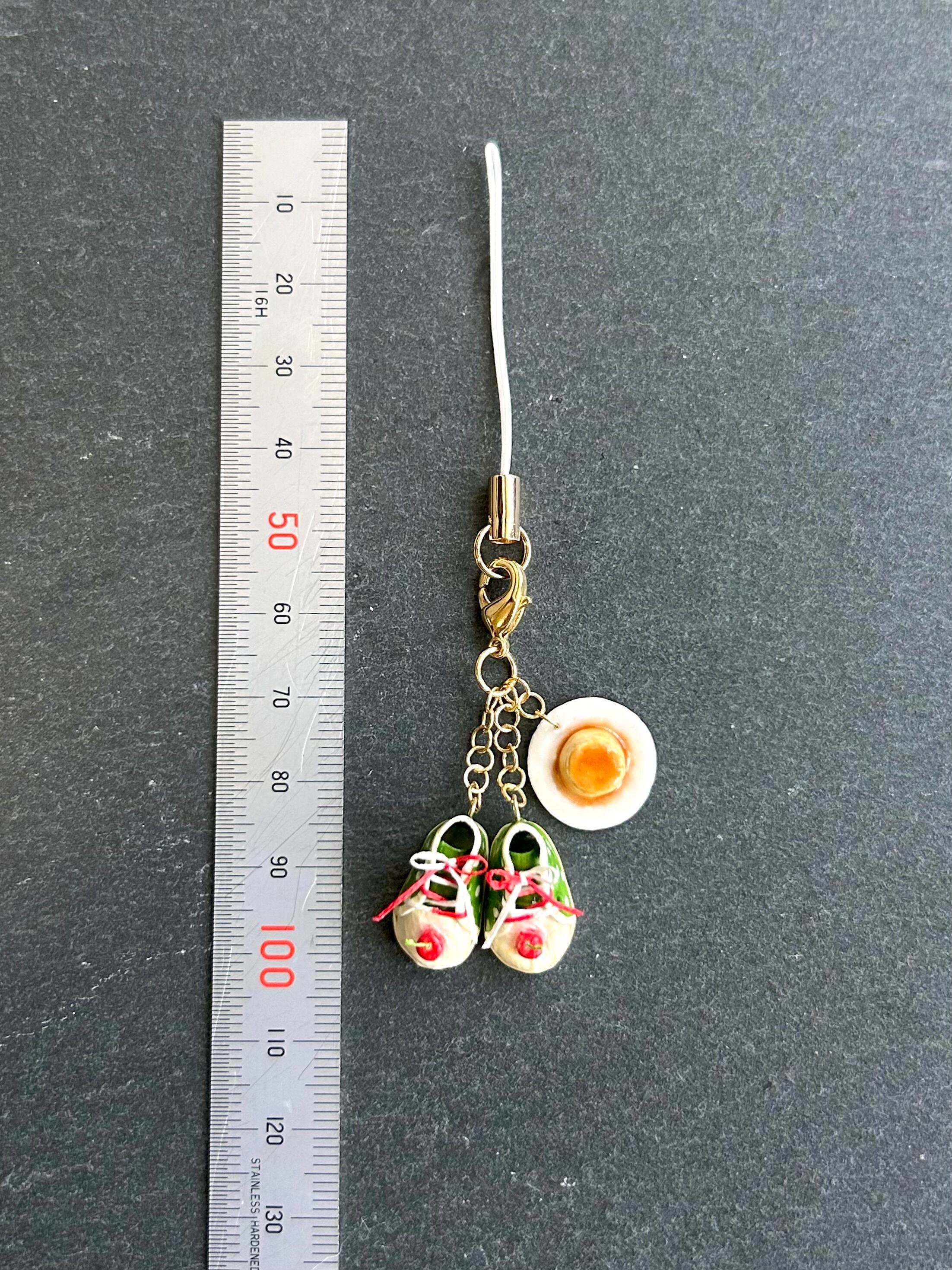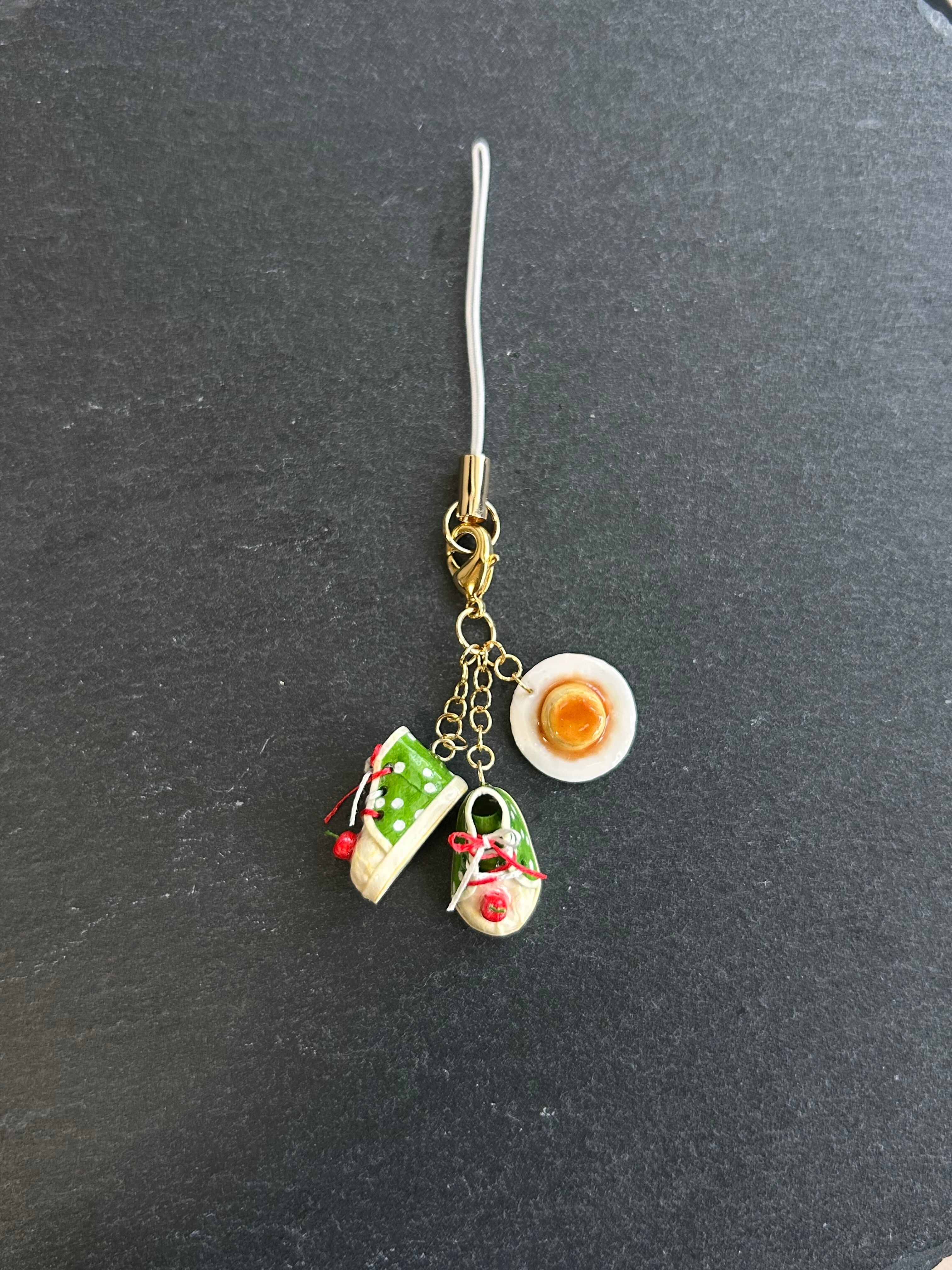 メロンソーダのスニーカーとプリンをストラップにした